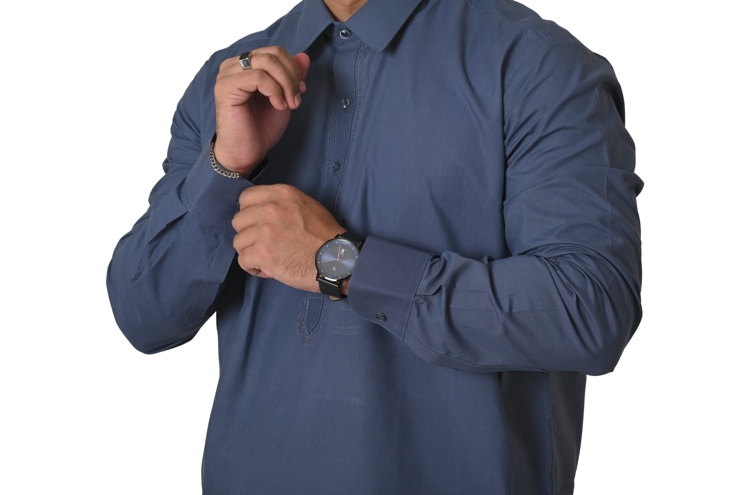 Experience the epitome of high-end fashion with this Rich Blue shalwar kameez. Designed with exquisite embroidery and a refined suit collar, it offers a flawless fit and effortless elegance for every occasion. Made from 80% cotton, it is easy to iron and offers a perfect fit for all body types