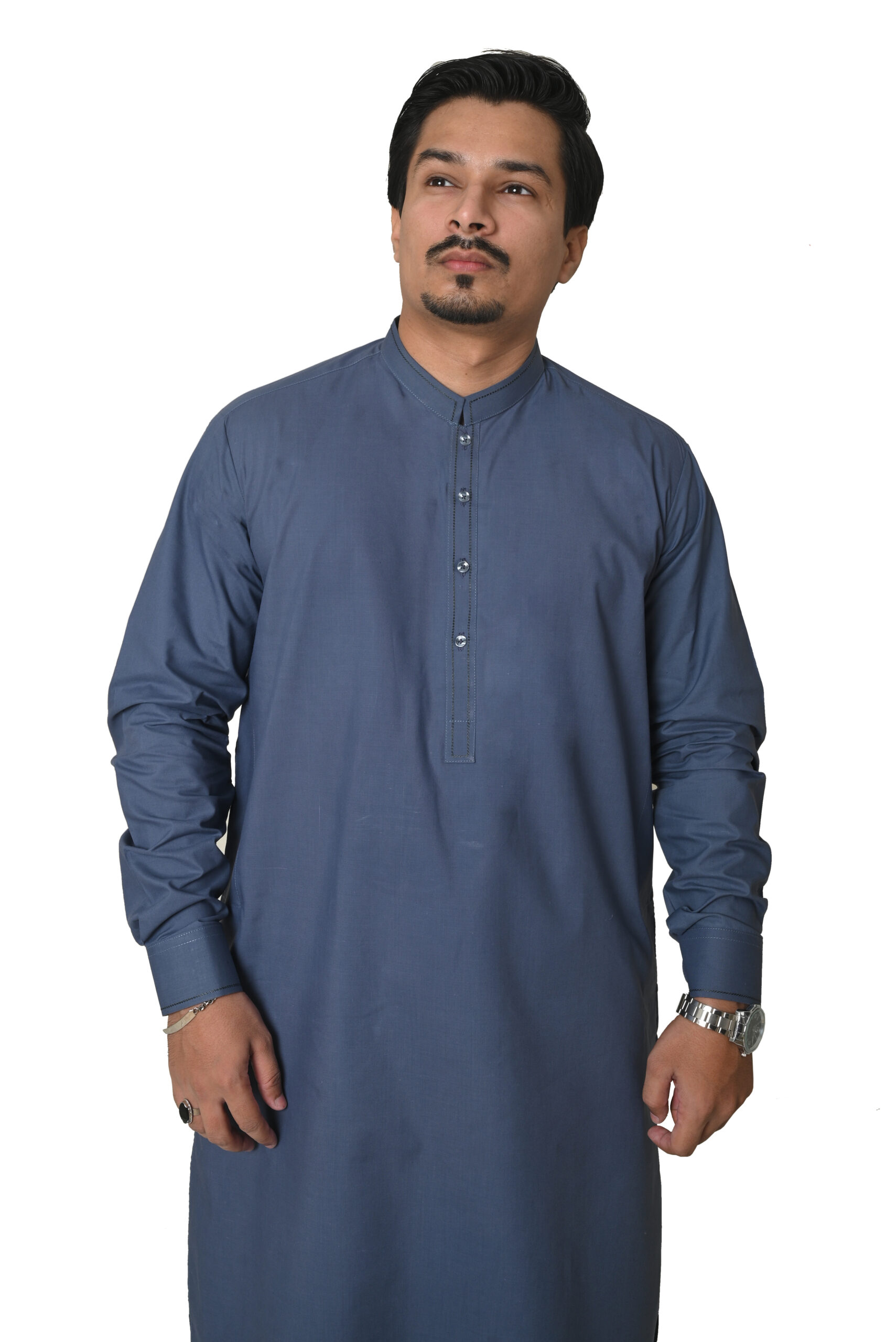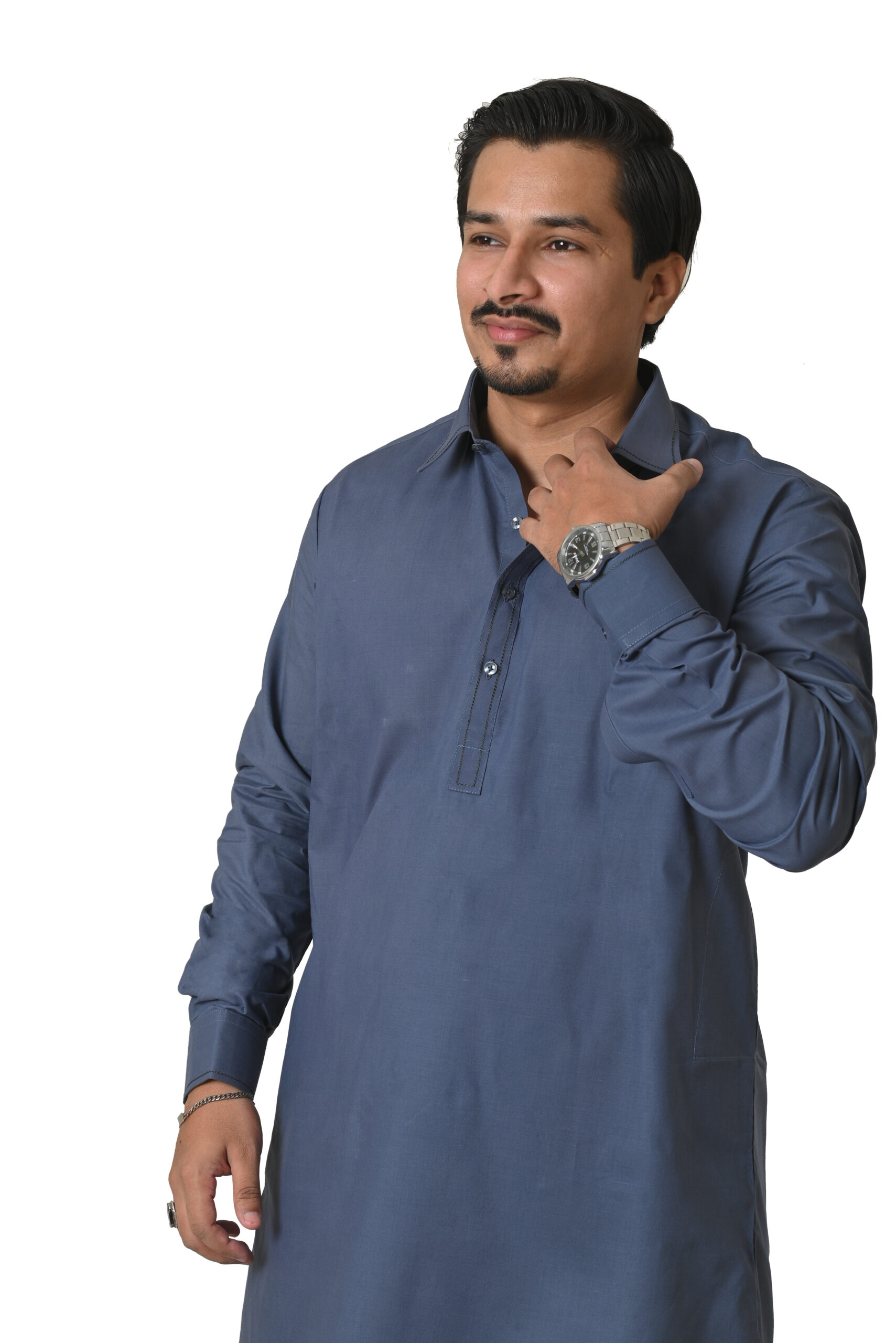 Embrace elegance with this stunning bluewood colour Shalwar Kameez with sherwani collar.