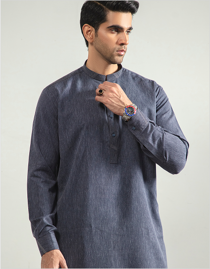 Blending tradition with modern sophistication, this Steel Blue 80% cotton shalwar kameez embodies cultural heritage while embracing contemporary finesse—ideal for any occasion.